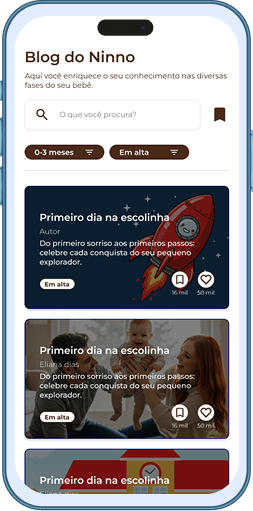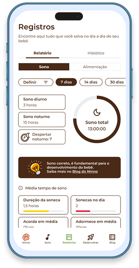 Ninno é seu assistente pessoal na jornada da maternidade. Centralize registros de sono, mamadas, fraldas e desenvolvimento em um só lugar e receba dicas inteligentes para simplificar sua rotina.