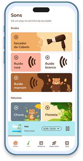 Você encontra uma seleção especial de ruídos e músicas suaves pensadas para acalmar e ajudar seu bebê a dormir com mais tranquilidade..